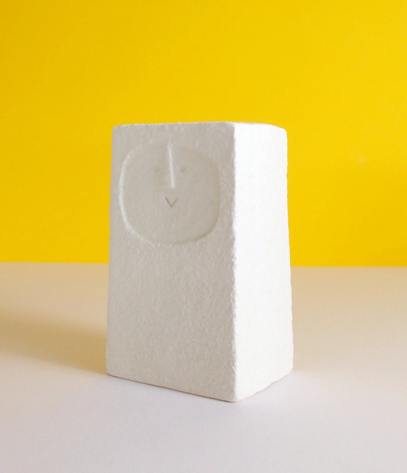 Slip-cast earthenware head with an off white matt glaze.